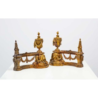 Pair of gilt bronze firedogs decorated with cassolettes, garland ...