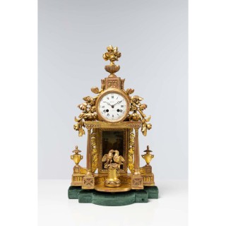Pair of gilt bronze firedogs decorated with cassolettes, garlands, lion's heads and obelisks. <Louis XVI period