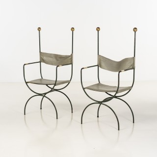 MAISON ET JARDIN, vers 1960 Deux fauteuils Fer forgé laqué v ...
