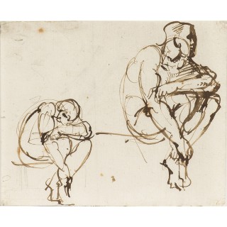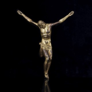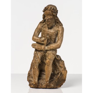 Christ aux liens en noyer sculpté avec restes de polychromie. Assis, les mains liées sur le devant par une cordelette, le Christ est...