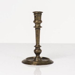 Bougeoir en bronze, fût tronconique, base circulaire moulurée, haut binet mouluré et repercé.XVIe siècle