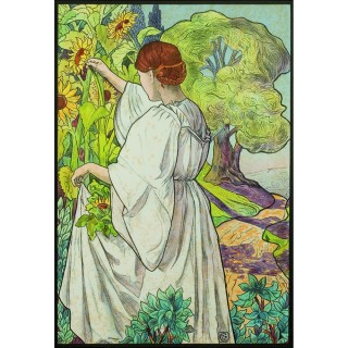 Lot de huit vitraux polychromes -Scène avec une sainte couronn ...