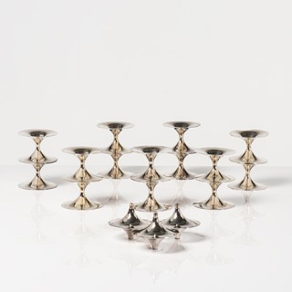 Deux petits pique-cierges en bronze, fût tourné en balustre, bas ...