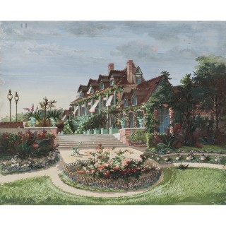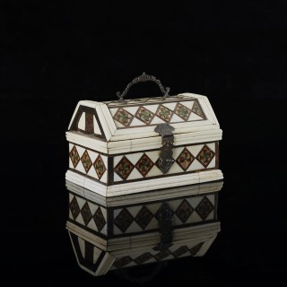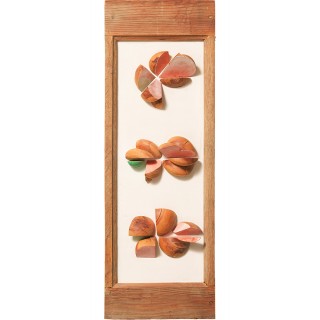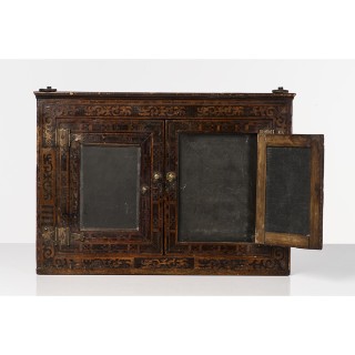 Tableau à ardoises dans un encadrement en bois marqueté ouvrant à deux petites portes à double châssis ; pentures en laiton.Allemagn...