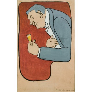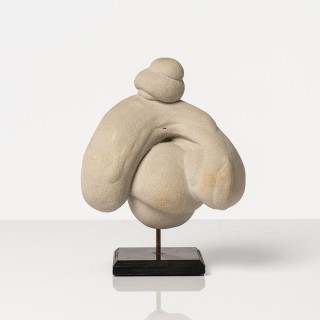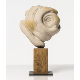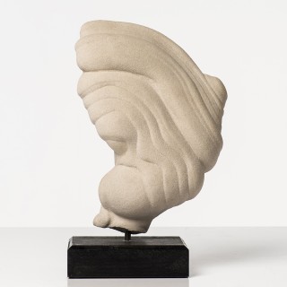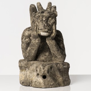 Diable en pierre calcaire sculpté en ronde-bosse, représenté en buste se tenant la tête à deux mains et tirant la langue.XIXe siècle...