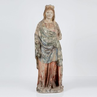 Vierge en bois sculpté en ronde-bosse polychromé et doré. Debout ...