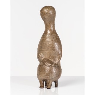 Bougeoir en bronze, fût tronconique, base circulaire moulurée, h ...