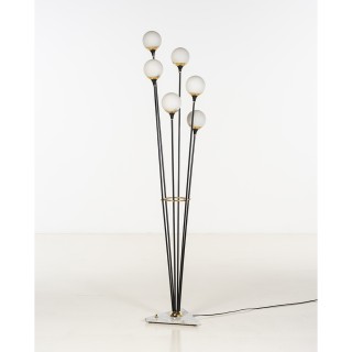 Lampadaire Stilnovo , à six branches et globes (restaurations) H: 117 x L (base): 30 cm