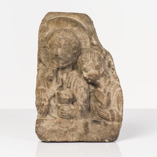 Grande Vierge à l'Enfant en pierre calcaire sculptée en ronde-bo ...
