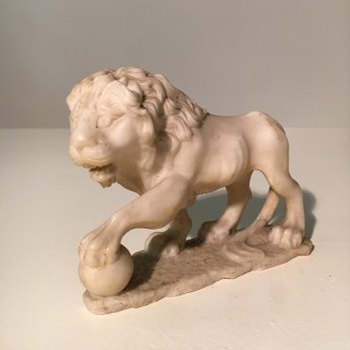 Lion Albâtre XIXème siècle H 13.5 x L 17 cm