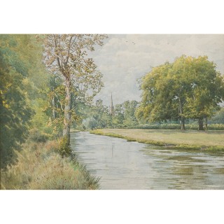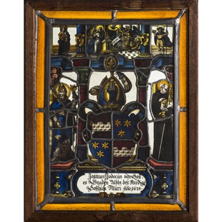 Lot de huit vitraux polychromes-Scène avec une sainte couronnée, inscription WILHELMVS KREB SIGER CANONICVS BERONENSIS ANNO A.P.V. M...