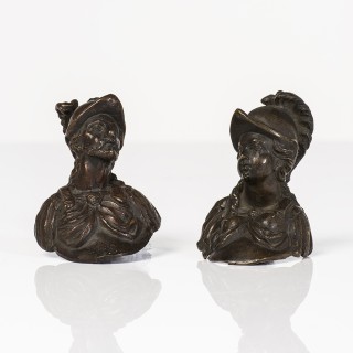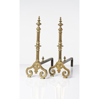 Paire de chenets en bronze et fer.XIXe siècle, dans le style de la fi de la Renaissance