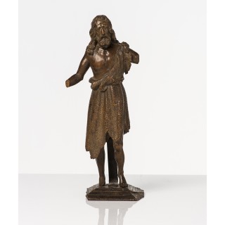 Saint Jean-Baptiste en noyer sculpté en ronde-bosse. Debout, il ...
