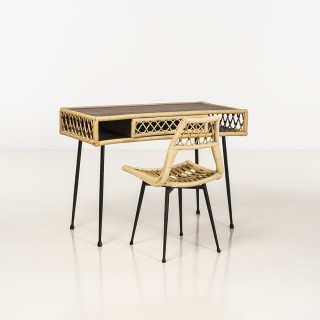 Travail français vers 1950Bureau et sa chaise à l'imitation du rotin