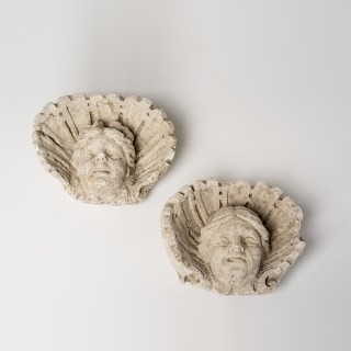 Paire de têtes de chérubins Sculptures Pierre calcaire Dat ...