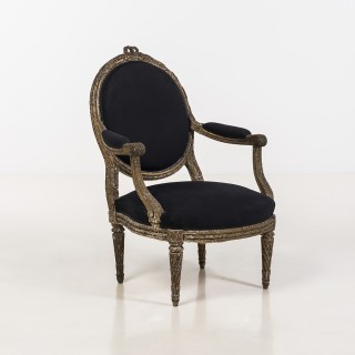 Travail du XIXe siècle Fauteuil Bois et tissu H 108,5 × L ...