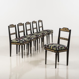 Travail du XIXe siècle Suite de six chaises Bois peint et ti ...