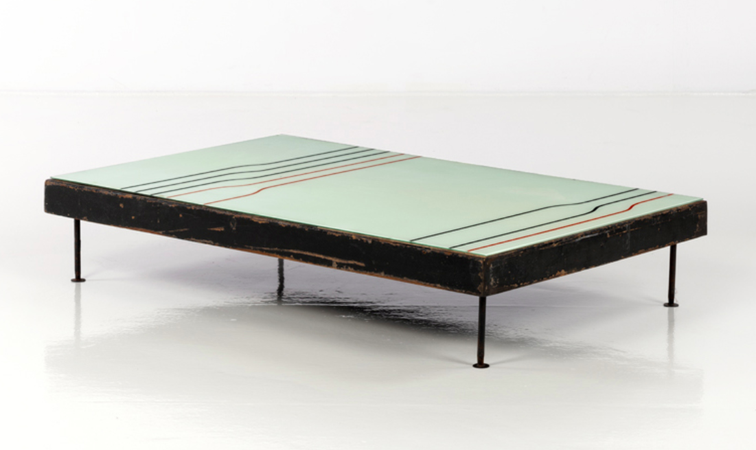 In order to explore the diversity of materials, Abraham Palatnik embarks on the realization of furniture at the confluence of art, design and mechanics. Unique piece, the table offered for sale by PIASA is emblematic of the artist's desire to cross the boundaries between disciplines. The plywood surface was painted by hand before being covered with glass.