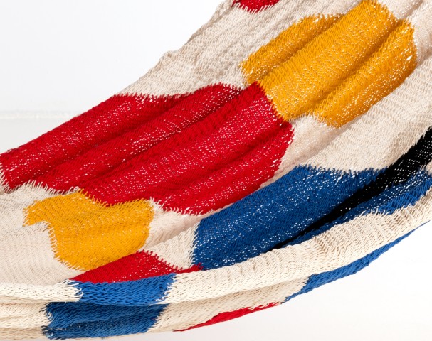 From the 1970's, tapestry becomes a new way for Alexander Calder to represent this balance at the same time strange and perfect. These tapestries are endowed with the very graphic style and so representative of the artist, with abstract forms, often poetic and boldly colored. The tapestry is a way to interpret his art and to retranscribe his gouaches on larger formats and a support more complex to work. One finds there abstract motives of primary colors, usual at the artist, as well as white backgrounds which release a large empty page and which remind the art of Piet Mondrian, whom Calder met in his workshop in 1930.
