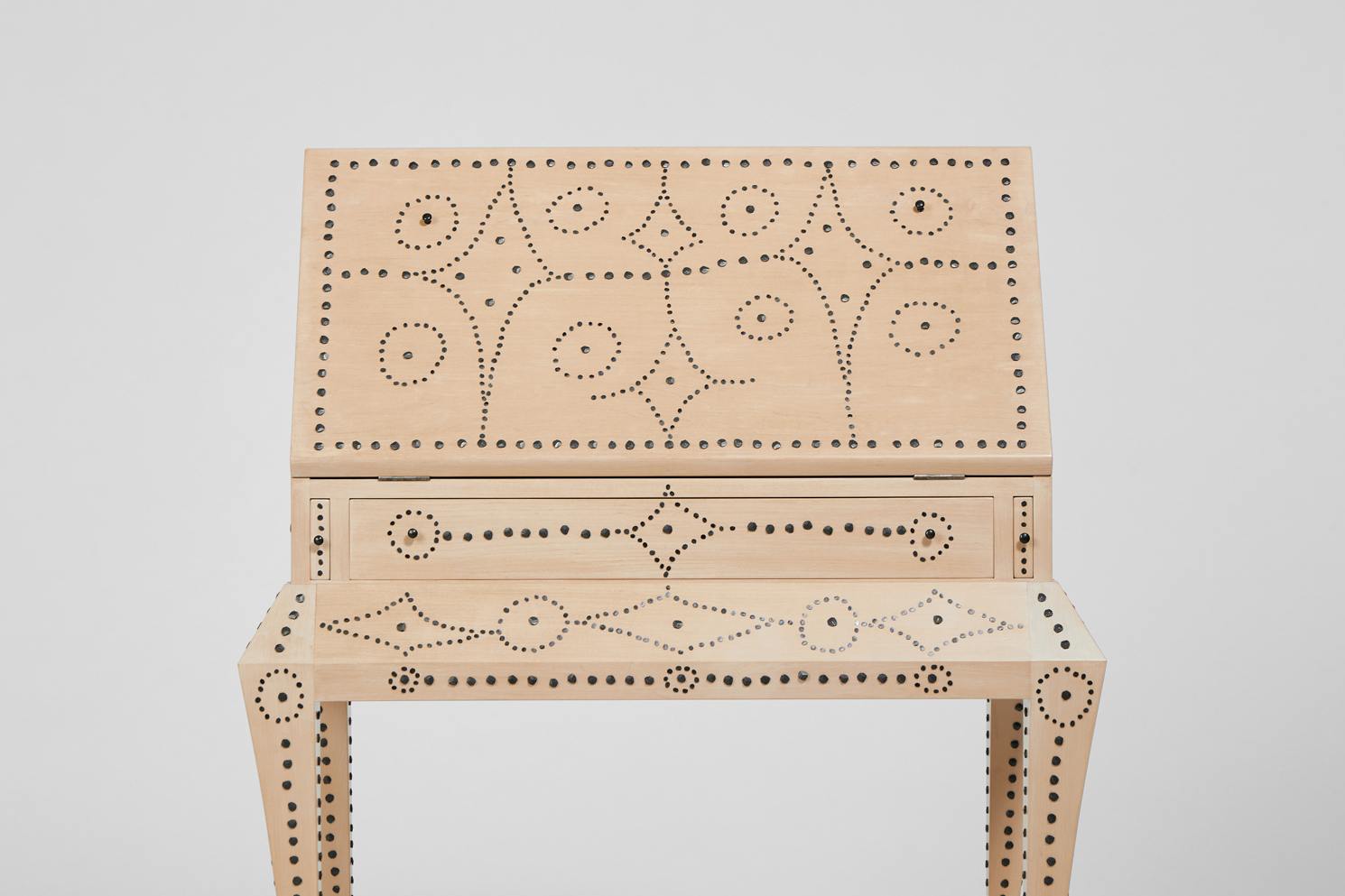 Finally, it is hard not to notice this scriban desk - a unique piece - by Judy Kensley McKie, whose very eclectic, but even rarer production unleashes the passion of aficionados.
