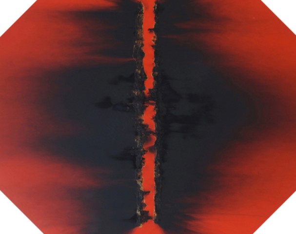 If its author has never openly been part of it, this work can be situated close to the issues raised by the Support/Surfaces group. In 1971, the artist evolves his artistic process. He uses knots of rope and strings to paint thus turning his back, as Pierre Soulages did a few years later, to the canonical use of the brush. Fire and the traces of combustion - as traces of something - also fascinate the artist. An ode to randomness, the flames draw patterns, ravage some surfaces, sparing some of them.