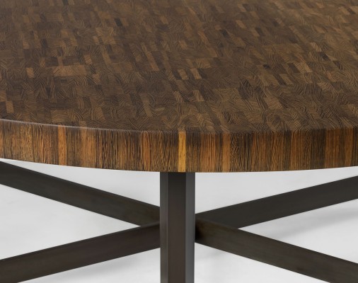 Several remarkable pieces are on display, such as a unique pequi wood table by Brazilian designer José Zanine Caldas, pieces by Belgian designers Ado Chale and Jules Wabbes, and a whole series designed by Italian designer Angelo Mangiarotti. The selection also includes rugs by the American artist Alexander Calder, one of which was made by the Aubusson tapestry, lighting fixtures by the Finnish artist Paavo Tynell, including a floor lamp designed for the Aulanko Hotel in Finland, and special commissions (tables, consoles, etc.) by the American George Nakamoto. Last but not least, there is a very fine collection of chairs, stools, tables and benches by Pierre Jeanneret from the Chandigarh furniture collection.