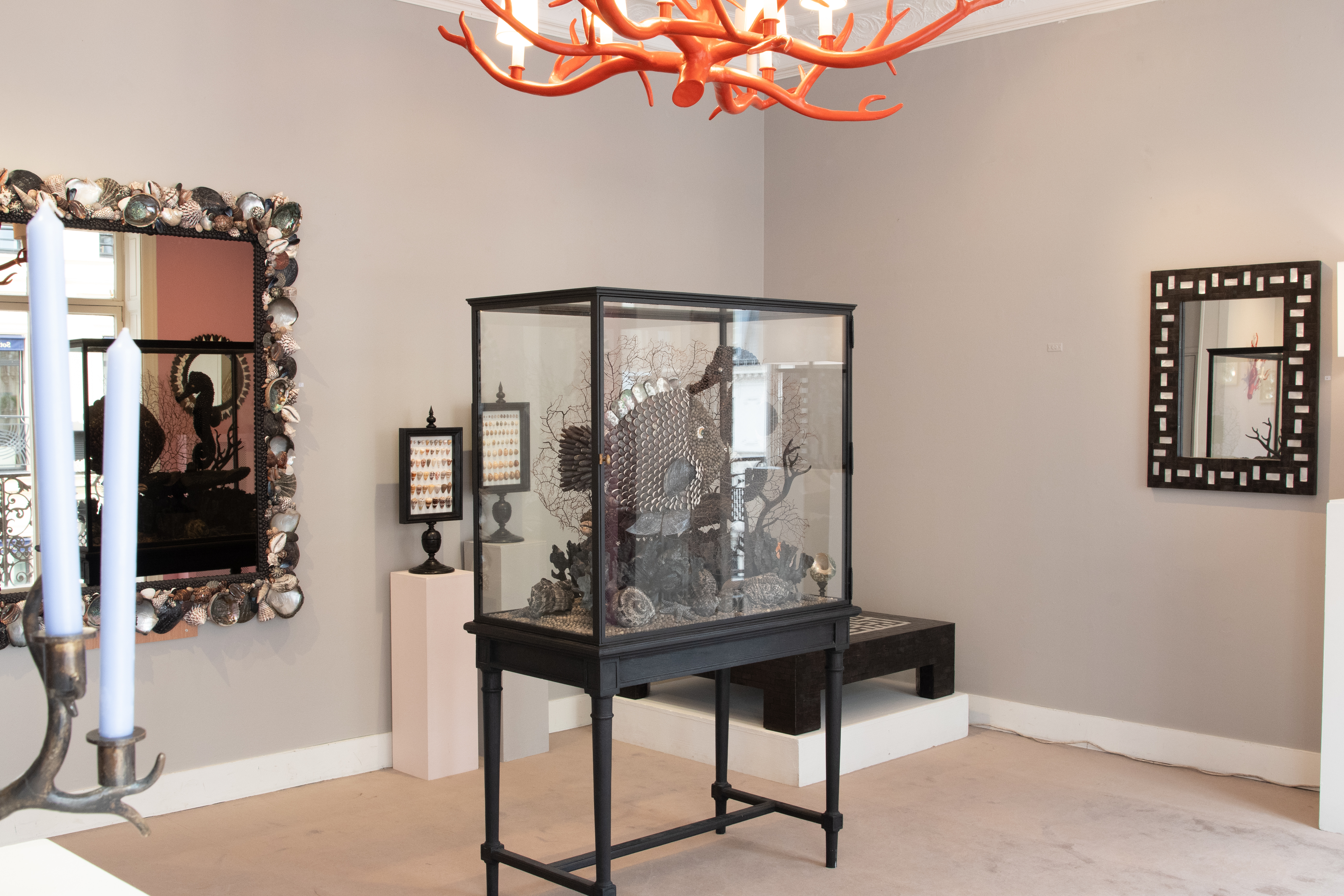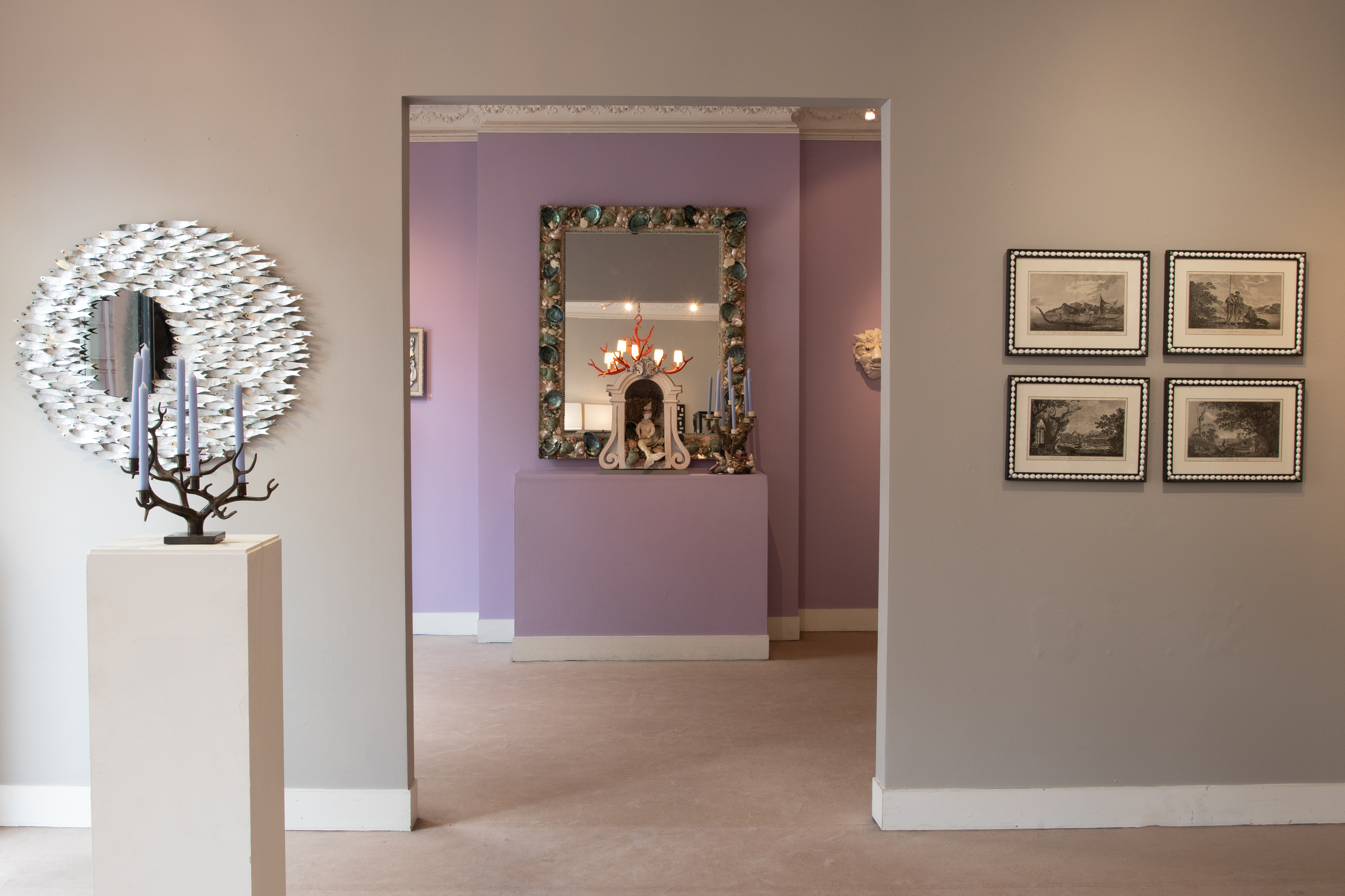 On the second floor, among the lots in the "Thomas Boog, Shell Design" sale, you will find mirrors, lamps, consoles, candlesticks, and vases adorned with shells, knives, and mother-of-pearl, as well as compositions made of pinecones and porcupine quills. Thomas Boog presents exceptional pieces here—true timeless treasures.