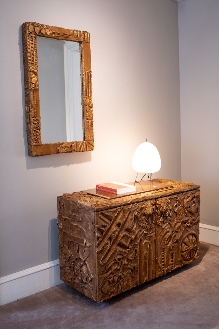 We find works by key designers from across the Atlantic, including Georges Nakashima, Frank Lloyd Wright, Paul Evans, Terence Harold Robsjohn-Gibbings, and Isamu Noguchi.