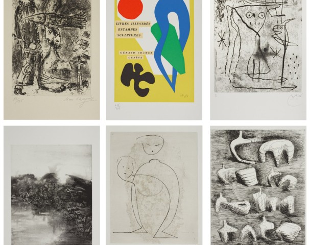 Bookseller and publisher, Gérald Cramer (1916-1991) produced some of the most important artists' books of his time. He settled in Geneva in 1943, where he very quickly began designing and publishing rare and precious books with his favorite artists. Already recognized as an expert in rare books, Gérald Cramer published catalogs which he soon had embellished with prints by artist friends. He soon met Picasso through collector Jean Masurel, after which Picasso dedicated to Cramer an engraved plate illustrating "To Pablo Picasso", a tribute text by Paul Eluard. Passionate, Cramer knew that he had to his work as a publisher by publishing books illustrated with original plates. This would lead to many works carried out by artists like Louis Jou or Valentine Hugo. At the same time, Cramer was publishing prints by Dunoyer de Segonzac, Braque, and Picasso.