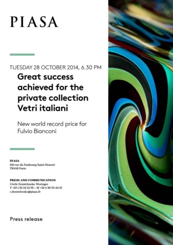 The sale of a private collection entitled Vetri Italiani 1932-92, staged at PIASA in Paris yesterday, paid tribute to Italian master glassmakers – yielding sales of almost €1 million (inc. premium) and setting record prices for Fulvio Bianconi and Flavio Poli.