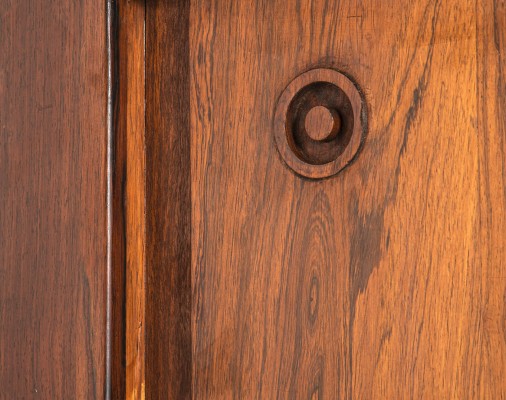 Sensual but geometric lines, resolutely organic shapes and the combination of precious wood and fine leather: like all his work, this piece is a masterful example of the designer's work between classic details and functional elegance.