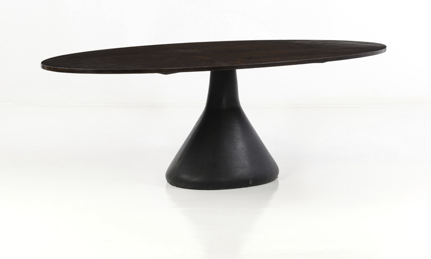 From the mid-1960s, his furniture was sold under license in the United States and Europe. It was during this period that the designer created this leather-covered concrete dining table. Published by Atelier Moveis, it is offered for sale with an estimate of between 15,000 and 20,000 euros. The simplicity of its structure combined with the balance of its masses gives the piece a rare elegance.