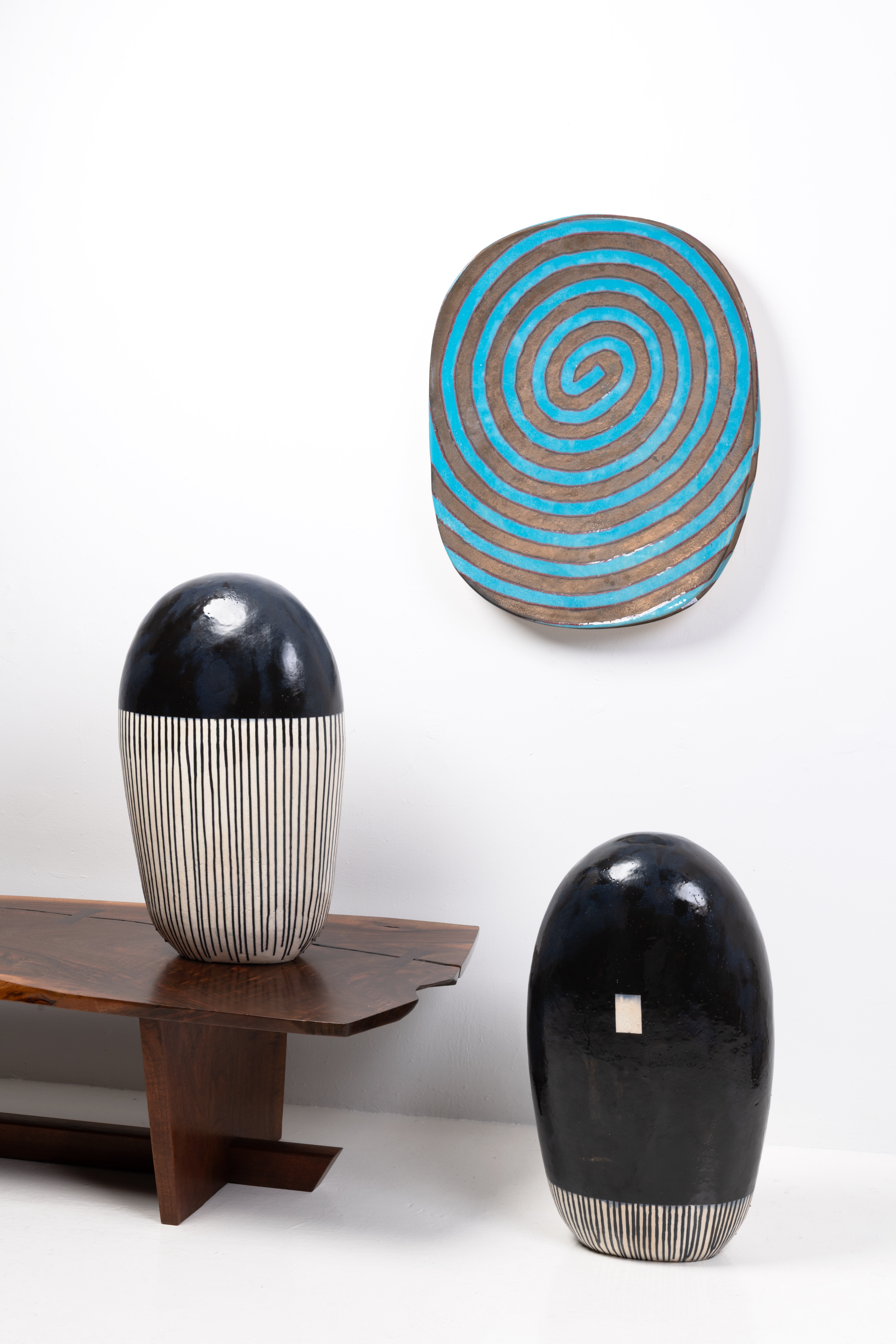 This movement, of which Stan Bitters is one of the heirs (a series of stools is also featured in the sale, estimated at €4,000/€6,000 per pair), has elevated ceramics from the status of craft to that of art. It also perfectly illustrates the typical Californian lifestyle of outdoor living: objects and furniture must be versatile enough to be moved from inside the house to the poolside. Jun Kaneko's Japanese culture of openness to the outside world, natural materials and minimalism has integrated perfectly into this creative ecosystem. The six sculptures on offer - two pieces from the Dango series (€20,000 / €30,000) and four wall sculptures (€7,000 / €9,000) - are hand-painted and reveal part of the world of this now world-famous artist. The play of light on the clean lines and dense, deep enamels evokes a poetry reminiscent of Jun'ichirō Tanizaki's In Praise of Shadows, transcended by the magic of abstraction.
