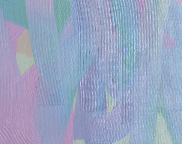 The artist creates his paintings on digital tablets or on image editing software such as Photoshop, then prints them on canvas and mimics the brushstrokes with hand-applied transparent acrylic or 3D printing. Using a familiar imagery of abstract gestures, his paintings question the interconnections between material and digital culture of the object.