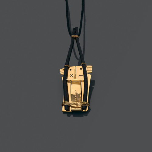 The gilded silver pendant, made in 2002, combines metal, wood and cotton very effectively. Equipped with a vermeil clasp, it is estimated at between 3,000 and 4,000 euros.
