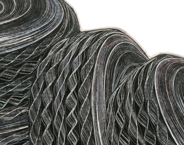 In a departure from his classical training, he moved away from painting and cut thin strips of newspaper and assembled them into an abstract composition. Guided by the plastic potential of paper, Pavlos developed a unique formal vocabulary.