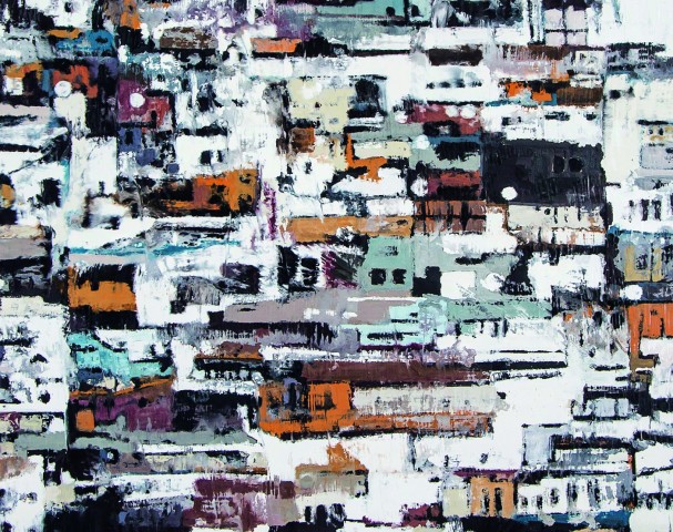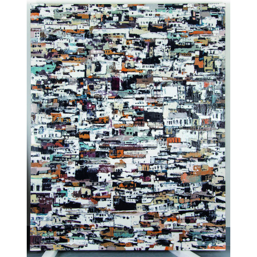 The painting offered in this sale is from the Medinas series, inspired by aerial views from Google earth. Like his paintings of crowds, a multitude of recurring motifs inhabit the entire pictorial surface and move the subject towards a hypnotic abstraction. The spatial treatment of the canvas of his Medinas inspired by satellite photos, however, cannot help but evoke the organised multitude of motifs of oriental carpets.
