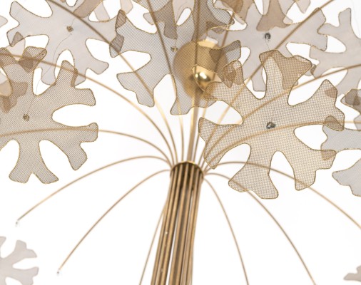 Among the highlights of the sale was the "Snowflake" suspension in brass and gold metal by Paavo Tynel. The light source of this suspension consists of four bulbs hidden in the perforated base. "Snowflakes" float on wires connected to elongated arms allowing an original diffusion of light. This luminaire is therefore a very representative piece of Tynell's creations, many of which echo the forms of nature.