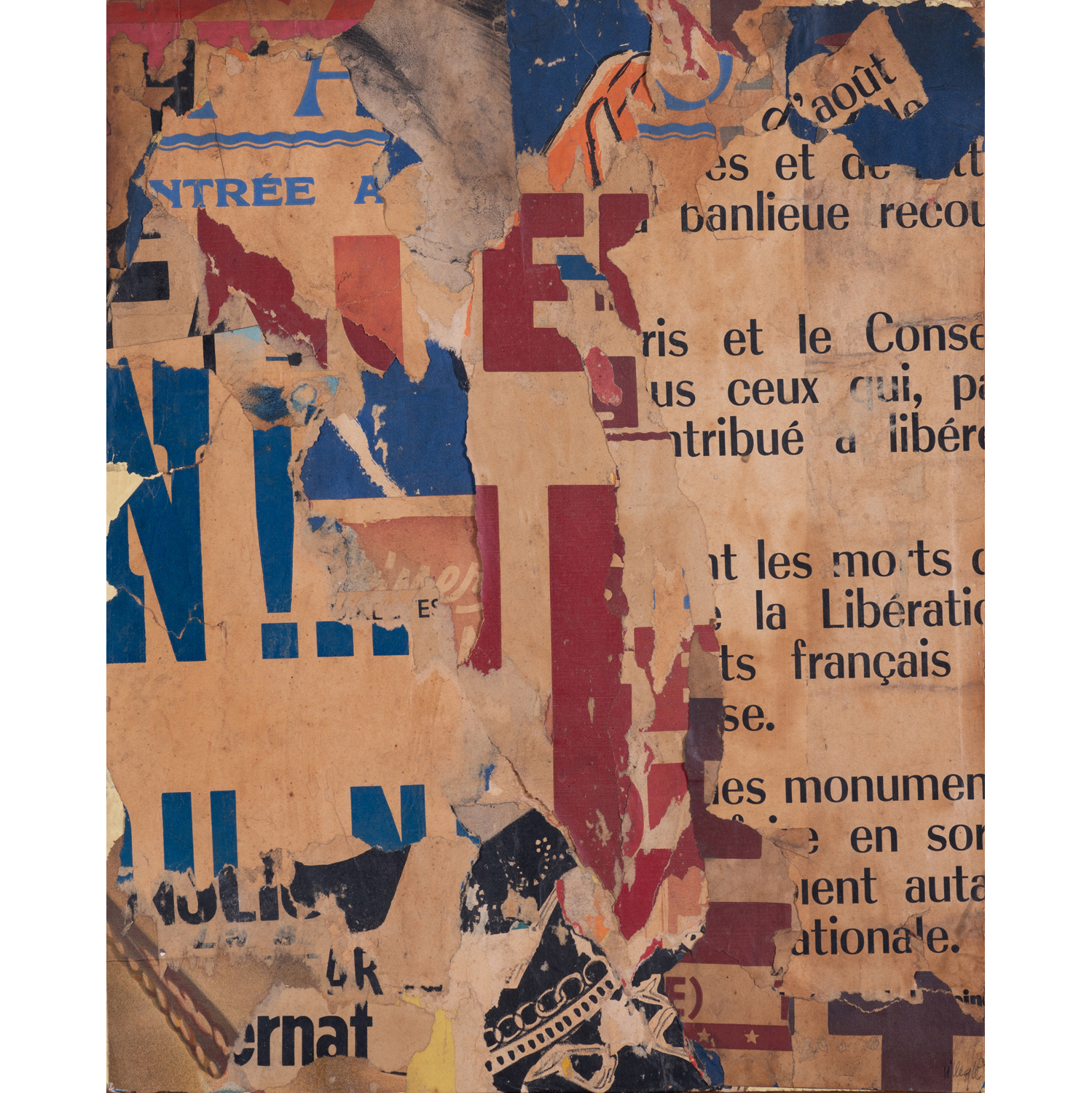 "My work," says Villeglé, "was organized under the aegis of the "anonymous lacerate"...[ ] The typographical character[of these posters] pulsates there so much that its intertwining introduces us by its almost vibratory disappearance in the field of the fortunately unreadable Mallarméan's unseen" analyses Villeglé. Jacques Villeglé's art is an art of incessant repetition.