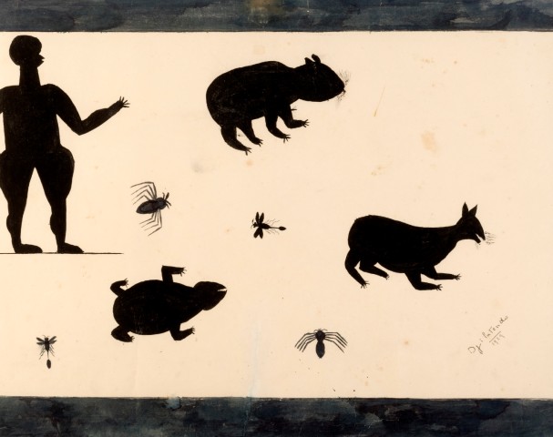 Pilipili is the son of a fisherman who works as a painter and plumber in Public Works when he meets Romain-Desfossés who will integrate him in the Hangar after 1947. He will be one of the most talented artists. If he sometimes applies a decorative style with strong serial and repetitive patterns, the Pilipili's drawings testify mainly of the Nature abundance.