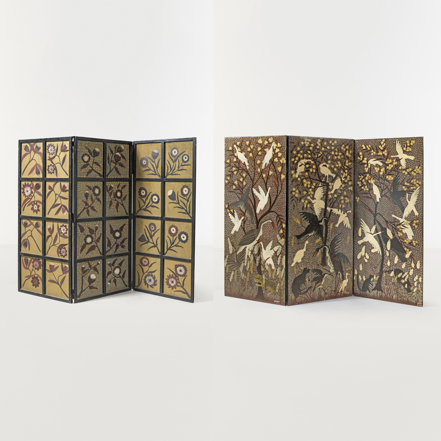 The screen made by Pilipili Mulongoy, Bela and Raphael Kalela is a perfect example of the Congolese modern art second period of the 1950s. In the early 1940s, Pierre Romain-Desfossés, attached to the military office of the High Commission of French Equatorial Africa, leaves France, then joins Brazzaville to establish a protection status for indigenous art and crafts. He is interested in anthropology and paints seabed. Quickly, born in him the will to make live the local artistic creation, and he creates in 1946 a Native art workshop he calls the Hangar.