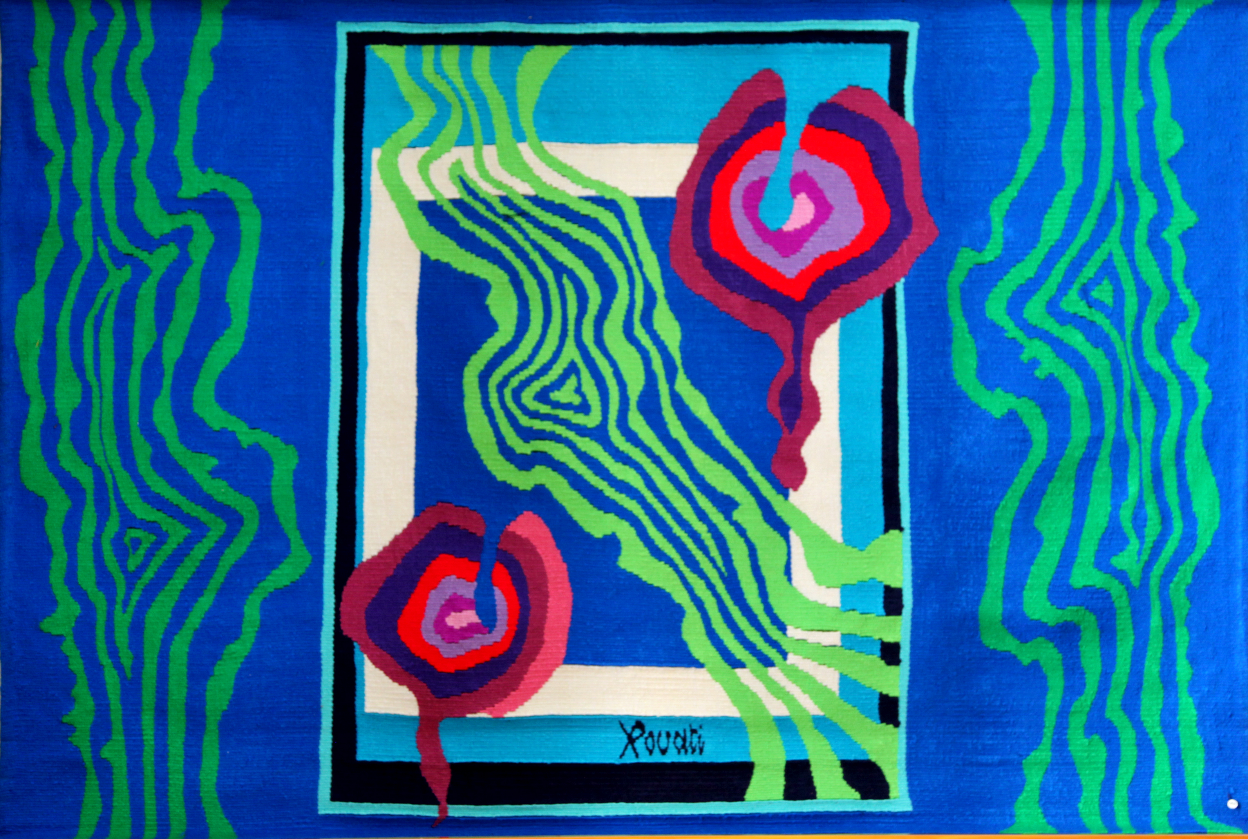 He builds his own high-quality looms (made from oak wood), with which he carries out his production. He develops tapestries applied to his designs, characterized by combinations of shapes and colors apparently inspired by floral motifs that he calls "cells".