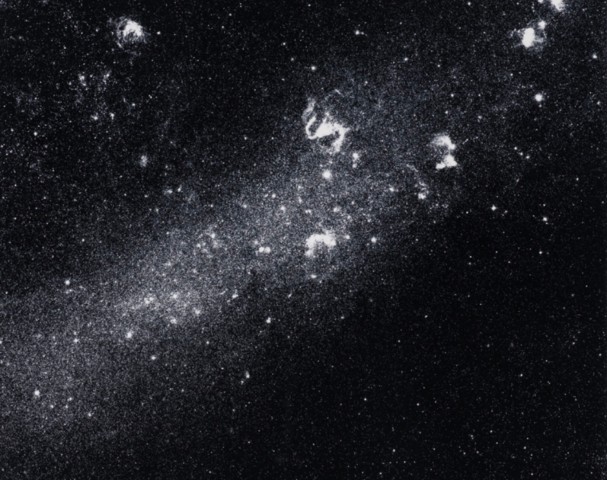 "As a pupil Ruff was fascinated by astronomy as he knew he was by photography. To him it therefore seemed only logical to turn the sky into the theme for more or less abstract images that were to consist of black surface with many white dots. Since he did not see how he would be able to achieve the quality of professional astronomic images with the photographic equipment available to him, he resolved to work with original copies, of the 1212 negatives of the "European Southern Observatory" (ESO" archive).