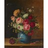 A. Gondois (XIXe - XXe siècle) Bouquets de pensées et bouquets de roses Deux toiles signées en bas à gauche 55 x 46 cm (Accidents)