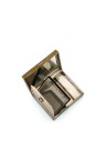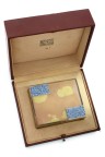 Silver powder compact, partially enameled, with chalcedony and round sapphires in monochrome