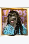 T'ayos Mirror, screws, oil, mixed media and electrical system on perforated panel in wooden frame 62 x 62 cm
