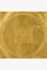 Gold leaf on embossed paper mounted on blue velvet panel