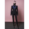 ALEXANDER McQUEEN 2009 VESTE en crêpe noir, effet de col en satin rebrodé de perles indigo T44 It