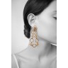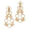 Long pair of articulated ear pendants in 18k yellow gold (750‰) with alternating floral and disc-shaped openwork links (clip system)