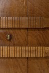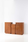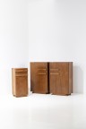 Modular set with a pair of cabinets and jam cupboard Wood and brass Each element stamped with 'Sornay' Model created circa 1940 Cabinet: H 142×L 90×W 48cm (each) Jam cupboard: H 119×L 54,5×W 46cm
